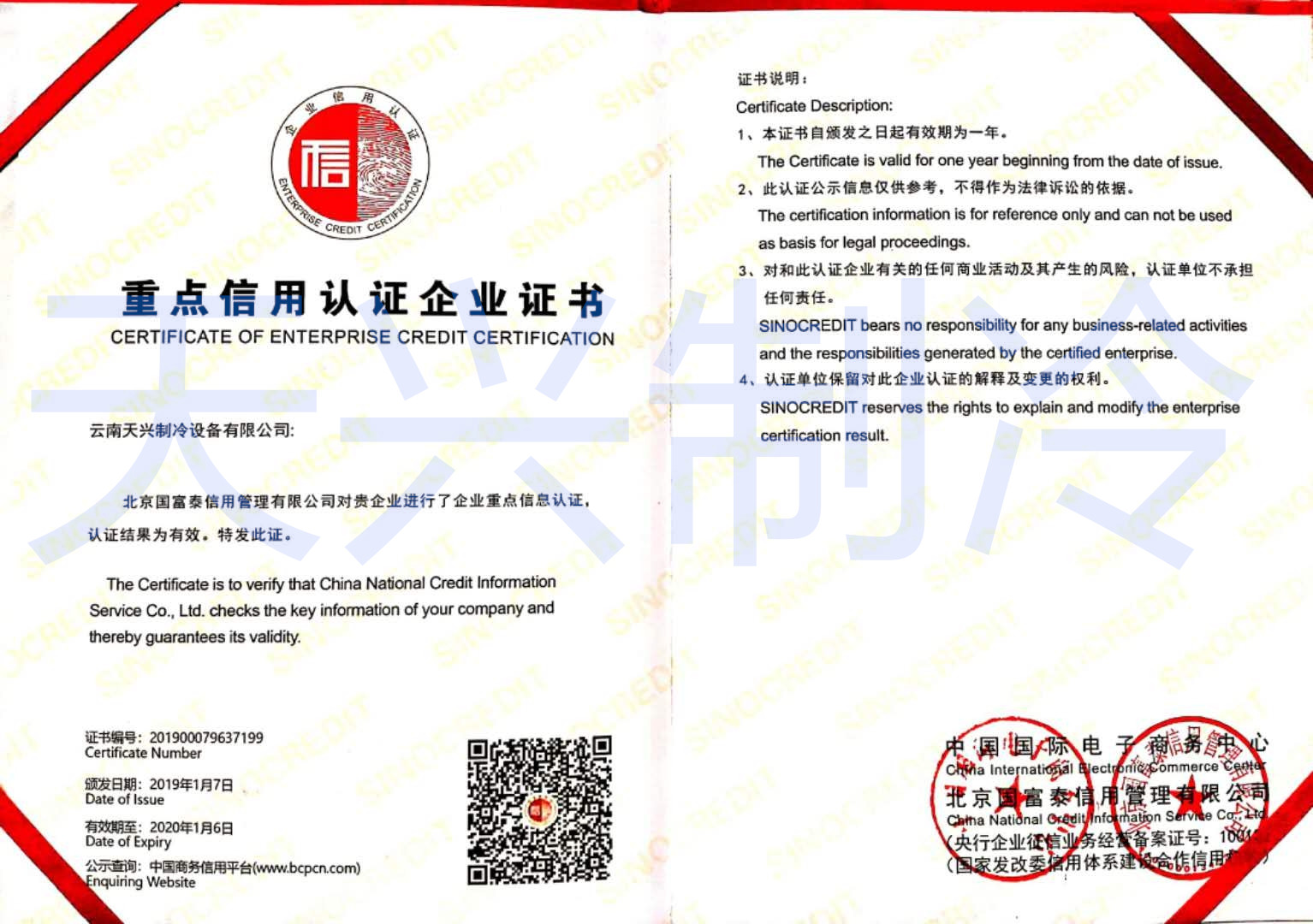 重點信用認(rèn)證企業(yè)證書